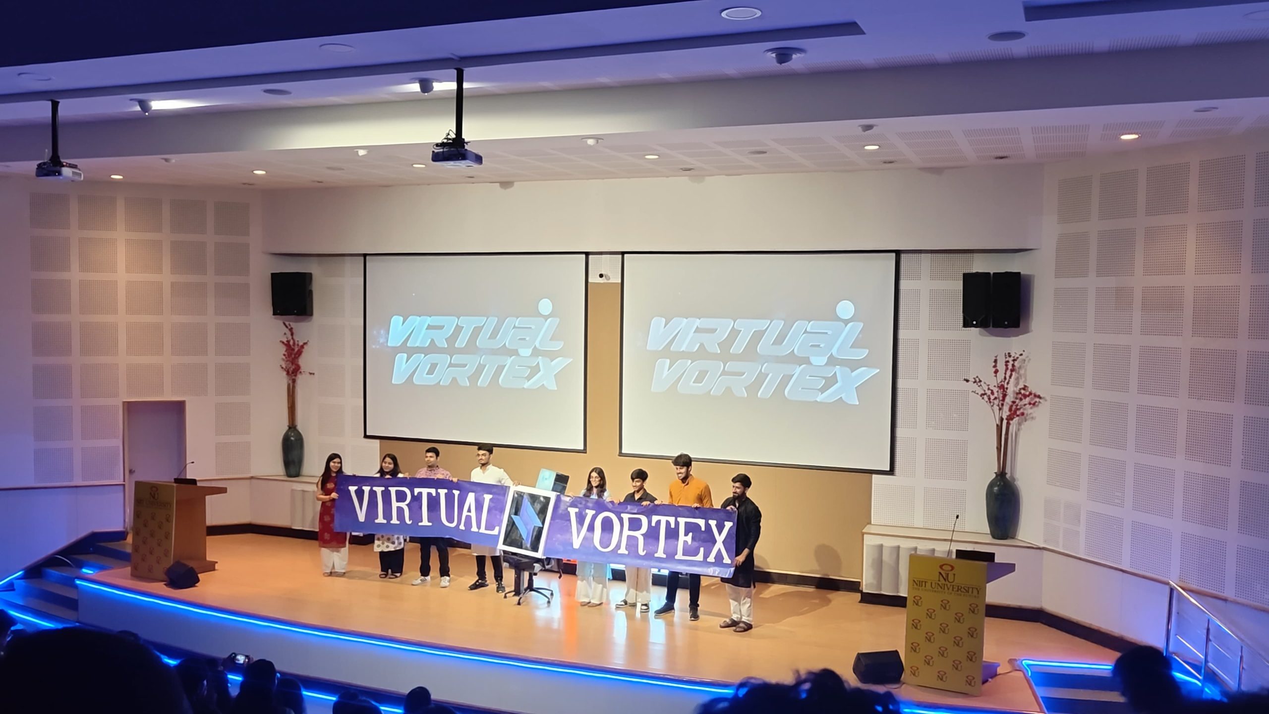 The grand moment arrived when the theme, “Virtual Vortex,” was revealed in futuristic style with the help of a robot carrying the siNUsoid logo. Cheers from the audience filled the hall, followed by the unveiling of the redesigned siNUsoid website. The evening ended with a vote of thanks, leaving students eager for the fest ahead.