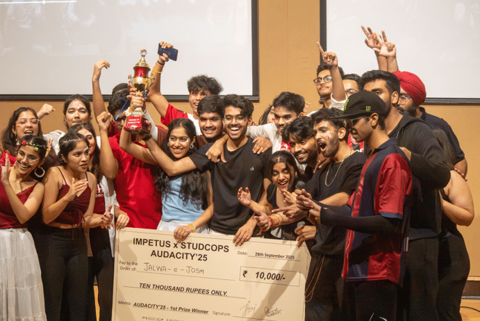 On September 28, 2025, NU Impetus, the dance society, organised its annual dance competition, Audacity, in the Auditorium. The event included performances across solo, duo, and group categories, featuring a range of styles such as classical, contemporary, hip-hop, and fusion. Students participated in large numbers, and the programme maintained steady engagement throughout.