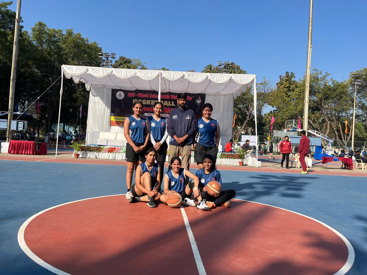 The NU Women’s Basketball Team achieved a commendable milestone by securing a Top 16 position at the West Zone Inter-University Basketball Tournament held from Dec 23, 2025 –Dec 27, 2025 at the Lakshmibai National Institute of Physical Education, Gwalior. The highly competitive tournament featured 96 universities from across the West Zone.